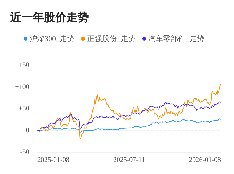 01月08日,正强股份(301119)股价继续上涨。截至今日收盘,正强股份上涨2.07%,收盘价为57.16元,盘中股价最高触及58.41元,股价创历史新高。