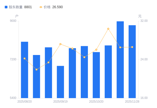 12月8日消息,数据显示,截至2025年11月28日,采纳股份A股股东总户数为8801户,较上期(2025年11月20日)减少184户,降幅2.05%。公司最新A股总股本为1.22亿股,其中流通A股7564.07万股,户均持有流通A股数量为8594.55股,较上期增加176股,增幅2.09%;户均持流通A股市值22.85万元,较上期增加5269.25元,增幅2.36%。