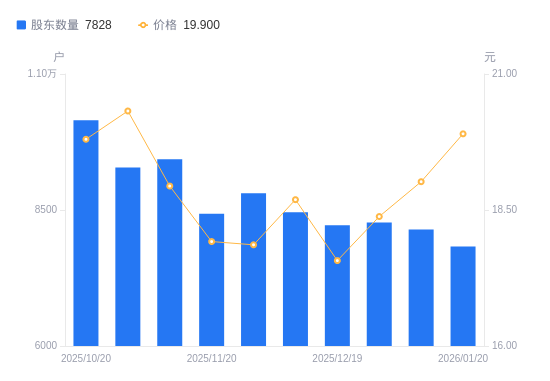 1月22日消息,数据显示,截至2026年1月20日,腾亚精工A股股东总户数为7828户,较上期(2026年1月9日)减少314户,降幅3.86%。公司最新A股总股本为1.42亿股,其中流通A股1.26亿股,户均持有流通A股数量为1.61万股,较上期增加619.08股,增幅4.01%;户均持流通A股市值31.95万元,较上期增加2.59万元,增幅8.82%。