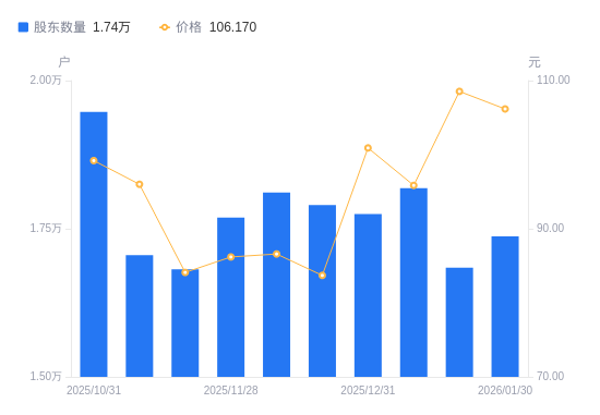 近一年(2025年2月10日至2026年1月30日),强瑞技术A股股东户数从1.28万户,增加至1.74万户,增幅35.52%,区间股价上涨142.87%。