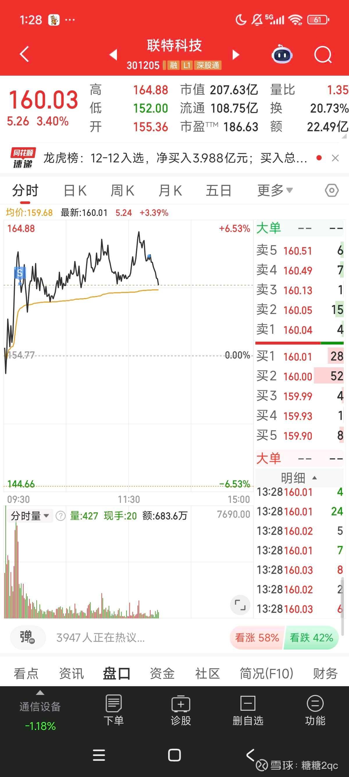 : 就这么说cpo光模块大跌日,12月12号……但是我一直说中际旭创只要新高,联特科技就加速,OK 说完隔日逆势涨停,还真加速