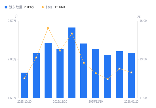 近一年(2025年2月10日至2026年1月30日),亨迪药业A股股东户数从1.88万户,增加至2.13万户,增幅13.31%,区间股价上涨0.23%。