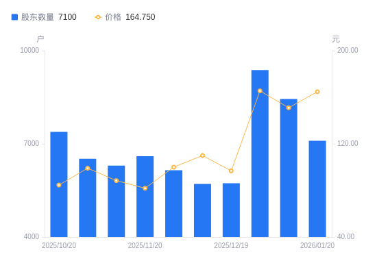 近一年(2025年1月20日至2026年1月20日),恒勃股份A股股东户数从8279户,减低至7100户,降幅14.24%,区间股价上涨541.85%。