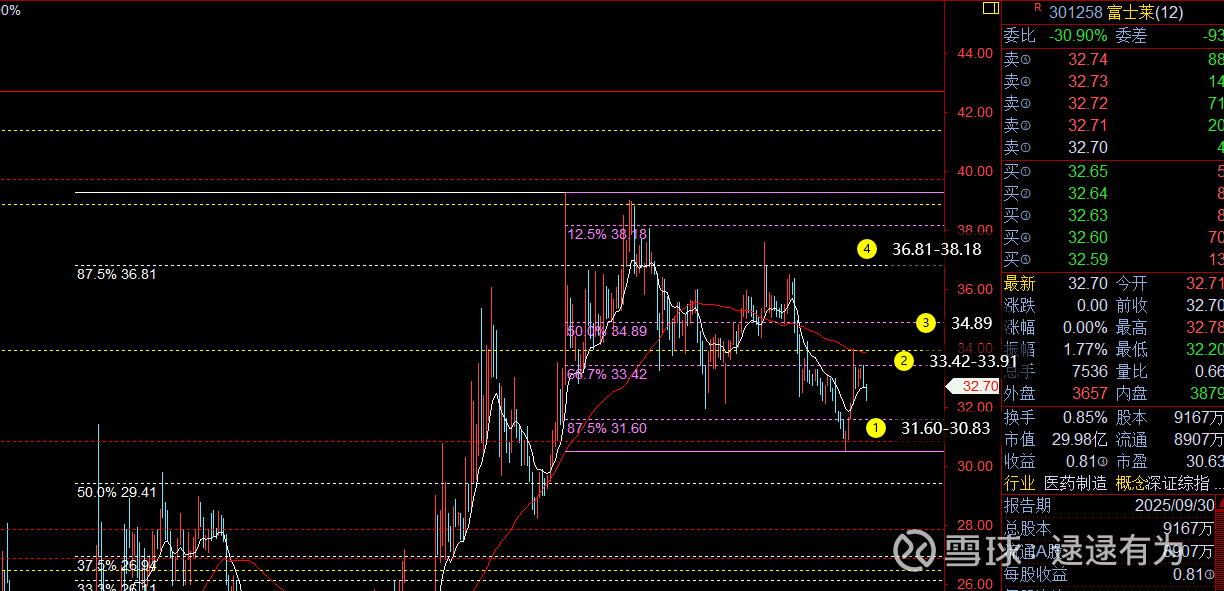 :脱离33.91-34.8支撑区,压力38.87-41.38区间。$富士莱(SZ301...
