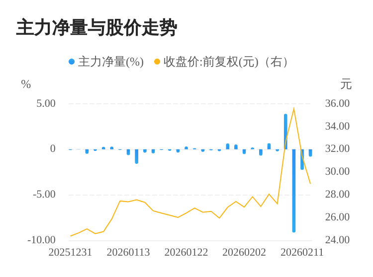 该股今日主力净量为负,且值较大,表明主力大幅流出,主动卖出明显多于主动买入。与此同时,今日换手率较高,主力抛售的嫌疑较大。投顾建议:投资者短期宜合理控制仓位,谨慎为佳。