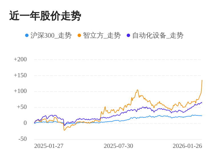 01月26日,智立方(301312)股价大涨。截至今日收盘,智立方上涨17.72%,收盘价为73.00元,收盘价创历史新高。