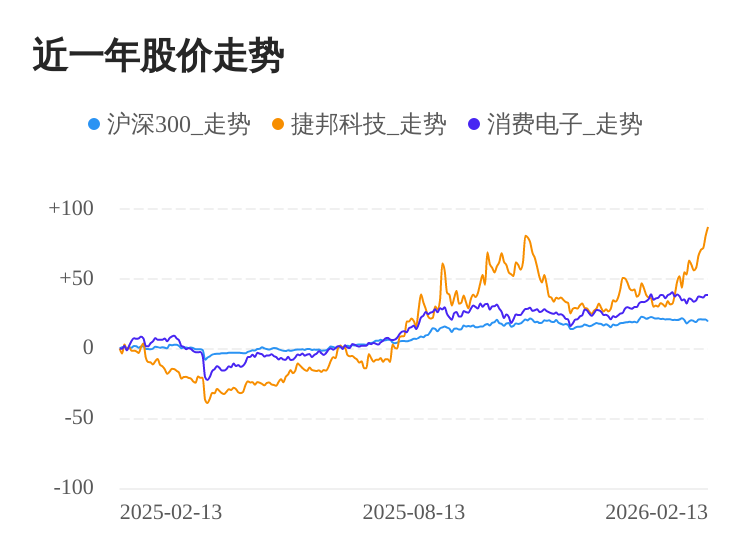 02月13日,捷邦科技(301326)股价继续上涨。截至今日收盘,捷邦科技上涨3.55%,收盘价为149.00元,盘中股价最高触及154.93元,股价创历史新高。