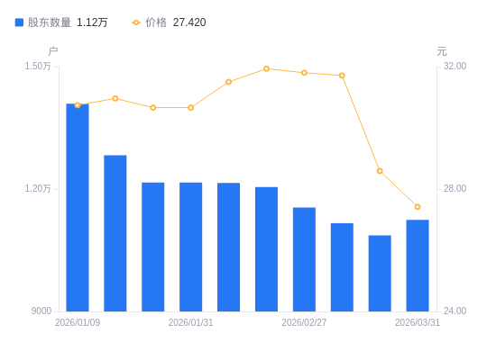 近一年(2025年3月31日至2026年3月31日),亚华电子A股股东户数从1.41万户,减低至1.12万户,降幅20.36%,区间股价下跌5.19%。