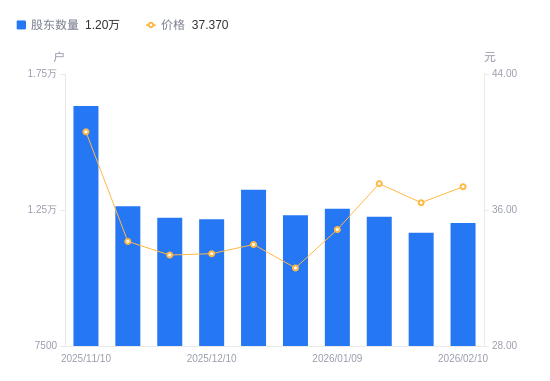2月11日消息,数据显示,截至2026年2月10日,众智科技A股股东总户数为1.2万户,较上期(2026年1月30日)增加359户,增幅3.08%。公司最新A股总股本为1.16亿股,其中流通A股3044.4万股,户均持有流通A股数量为2531.94股,较上期减少77.92股,降幅2.99%;户均持流通A股市值9.46万元,较上期减少458.7元,降幅0.48%。