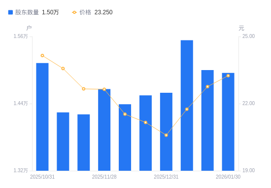 近一年(2025年3月31日至2026年1月20日),赛维时代A股股东户数从1.49万户,增加至1.5万户,增幅0.71%,区间股价上涨1.25%。