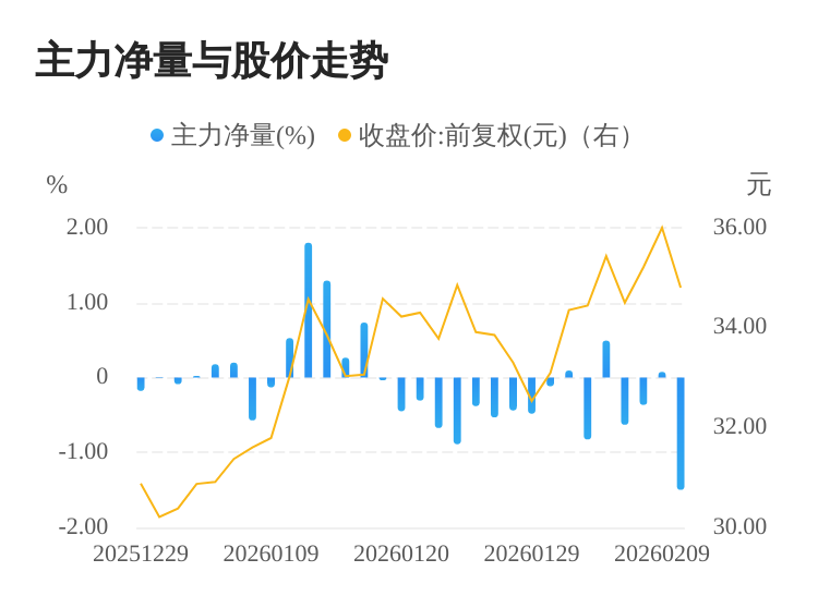 该股今日主力净量为负,且值较大,表明主力大幅流出,主动卖出明显多于主动买入。与此同时,今日换手率较高,主力抛售的嫌疑较大。投顾建议:投资者短期宜合理控制仓位,谨慎为佳。