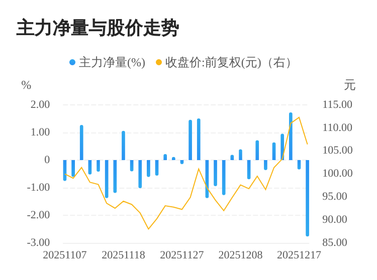 该股今日主力净量为负,且值较大,表明主力大幅流出,主动卖出明显多于主动买入。与此同时,今日换手率较高,主力抛售的嫌疑较大。投顾建议:投资者短期宜合理控制仓位,谨慎为佳。