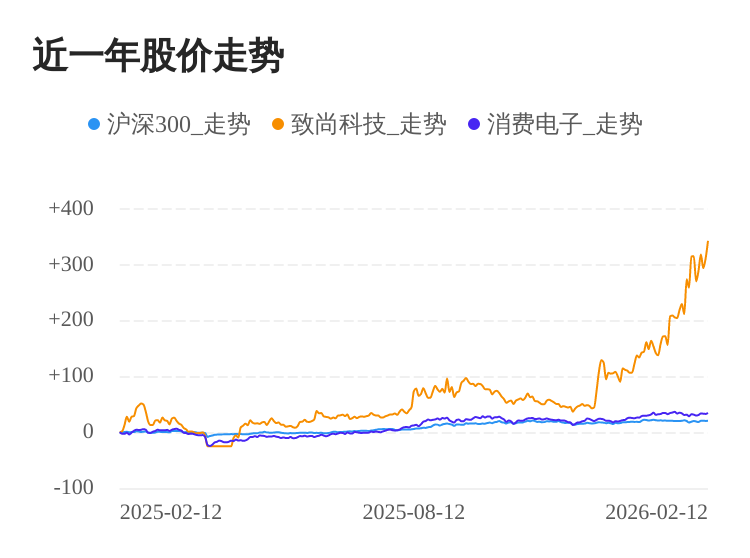 02月12日,致尚科技(301486)股价大涨。截至今日收盘,致尚科技上涨7.69%,收盘价为235.00元,收盘价创历史新高。