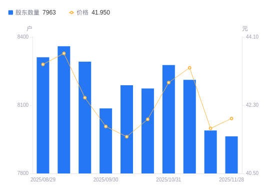 近一年(2024年12月31日至2025年11月28日),万邦医药A股股东户数从8673户,减低至7963户,降幅8.19%,区间股价上涨7.07%。