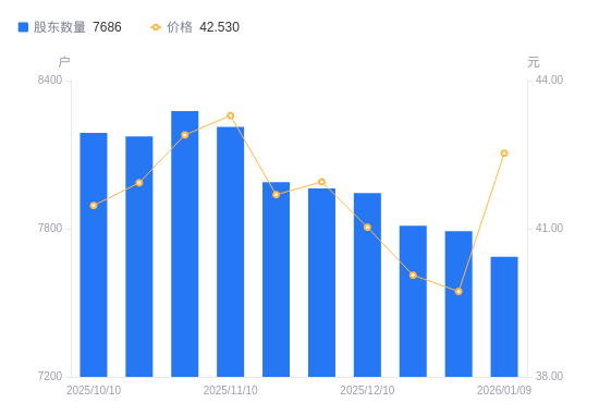 近一年(2025年3月31日至2026年1月9日),万邦医药A股股东户数从9256户,减低至7686户,降幅16.96%,区间股价上涨2.48%。
