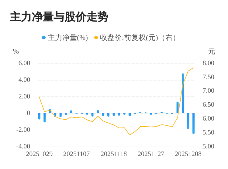 该股今日主力净量为负,且值较大,表明主力大幅流出,主动卖出明显多于主动买入。与此同时,今日换手率较高,主力抛售的嫌疑较大。投顾建议:投资者短期宜合理控制仓位,谨慎为佳。
