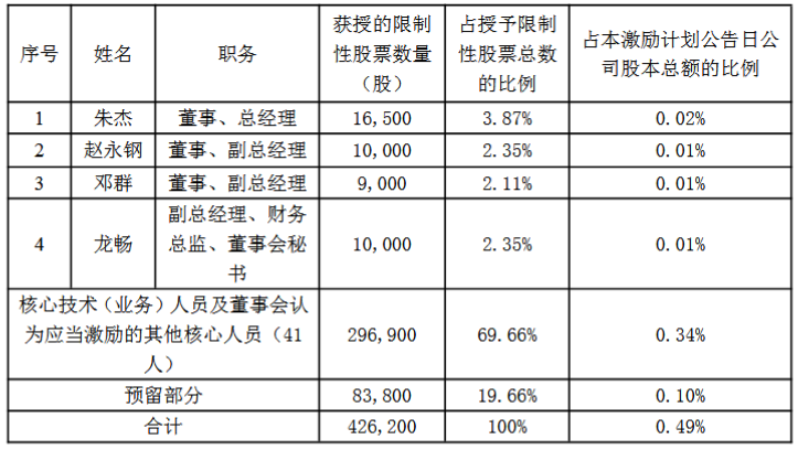 本次股权激励计划的激励对象共计45人。具体情况如下: