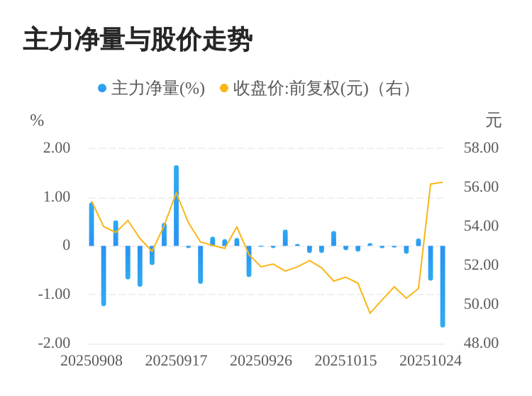浙江华业(301616)10月27日主力(dde大单净额)净流出1856.20万元,涨跌幅为0.16%,主力净量(dde大单净额/流通股)为-1.67%,两市排名5126/5161。