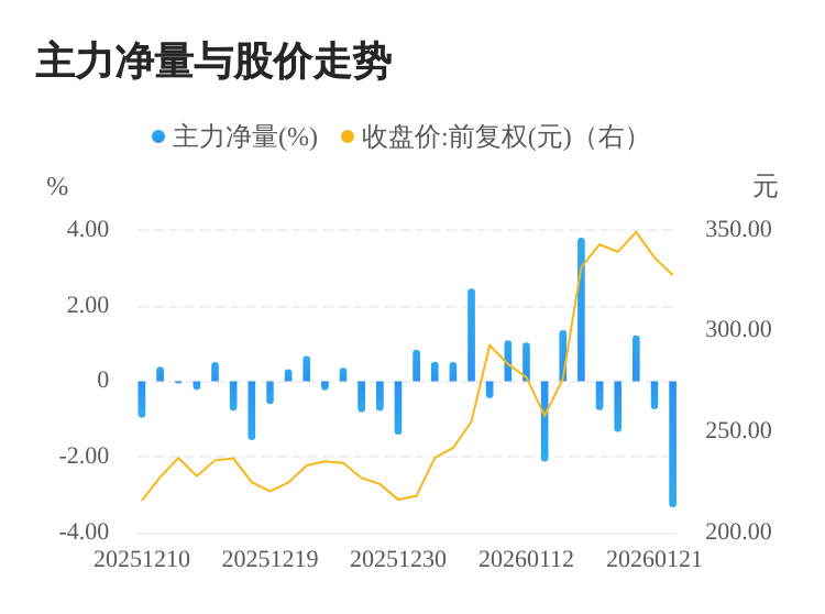 该股今日主力净量为负,且值较大,表明主力大幅流出,主动卖出明显多于主动买入。与此同时,今日换手率较高,主力抛售的嫌疑较大。投顾建议:投资者短期宜合理控制仓位,谨慎为佳。