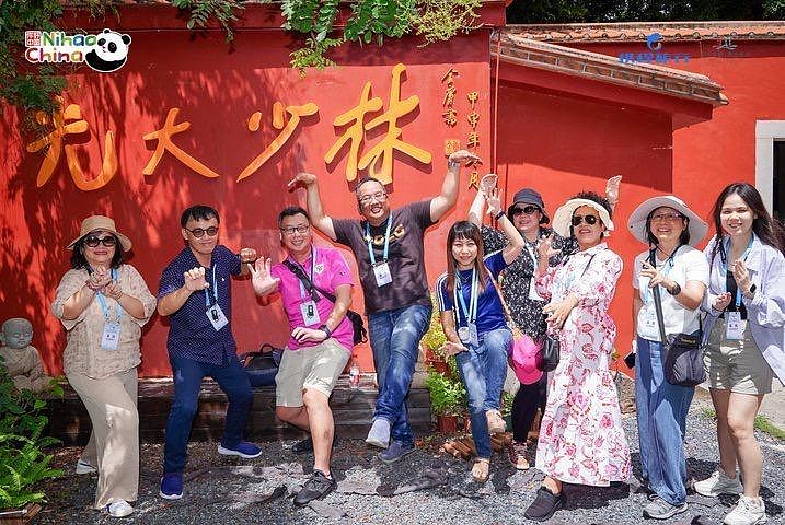 【泉州:南少林里忆英雄】踏入南少林寺,旅行商代表们纷纷化身镜头里的“武林高手”;触摸过蟳埔村的蚝壳厝后,非遗“簪花围”体验区排起了“美丽长龙”。