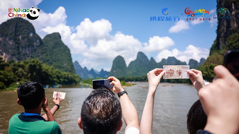【桂林:山水互动忆鲜活】漓江畔,旅行商代表们争先对照20元人民币拍摄同款风景照;靖江王府内纷纷化身古代考生,沉浸式参与科考场景;深入龙脊梯田市集,学几句地道方言,尝一番还价乐趣,笑做一回“本地人”。