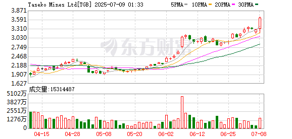 美股铜概念股集体拉升,Taseko Mines、麦克莫兰铜金涨超6%;纽约期铜日内涨幅一度扩大至17%,特朗普称将实施50%的铜关税。