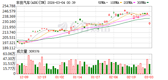 丰田汽车北美公司2026年2月美国汽车销量为180,950辆,新能源汽车销量为92,293辆。