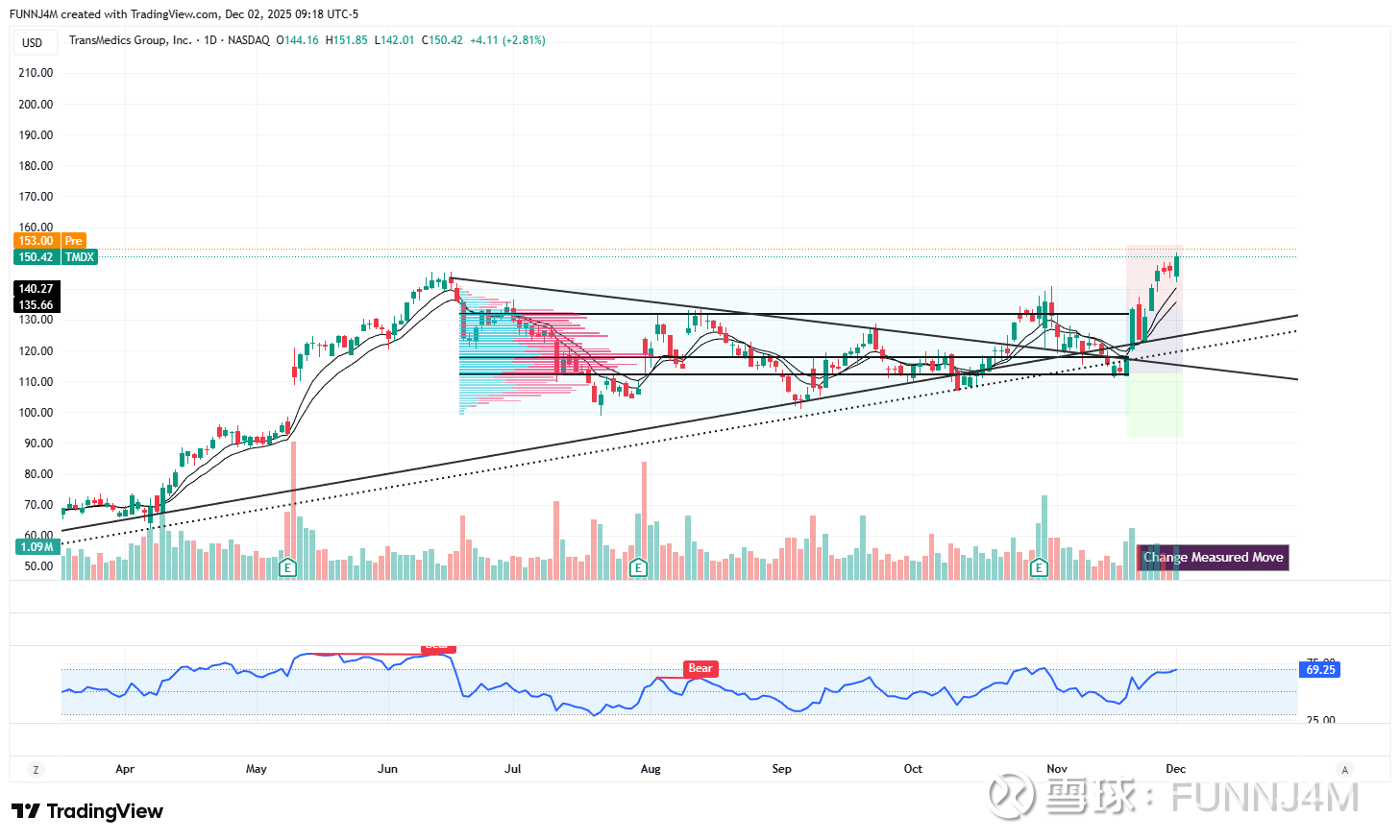 虽迟但到,上次突破wedge后因为宏观流动性影响回测VHL,112->132->152 小Measured Move达成后,中期看多到180。