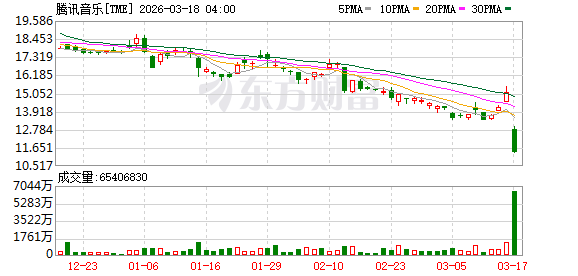 摩根大通将腾讯音乐评级从“增持”下调至“中性”;将目标股价从30美元下调至12美元。