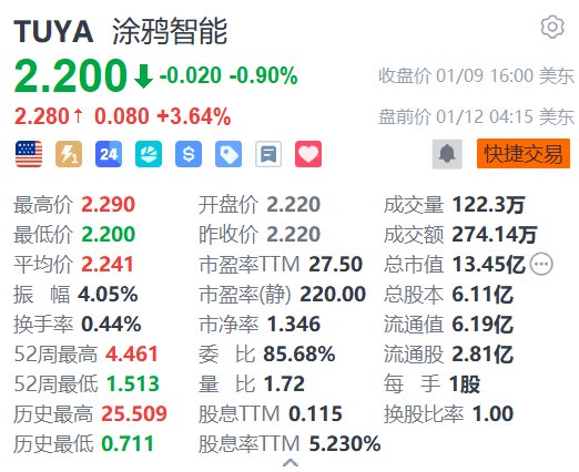涂鸦智能(TUYA.US)盘前涨3.64%,报2.28美元。消息面上,涂鸦智能在全球最大的消费电子展CES 2026上,正式发布其首款AI宠物陪伴概念产品——Aura机器人。作为一款集陪伴互动、智能照护与生活服务于一体的AI机器人,Aura不仅可通过多模态AI交互,为全球宠物提供前所未有的情感陪伴体验,还能延伸至更广泛的家庭看护与生活服务场景。Aura的“诞生”,标志着涂鸦智能在消费级AI机器人领域取得关键突破,加速推动Physical AI(物理AI)融入生活。(格隆汇)