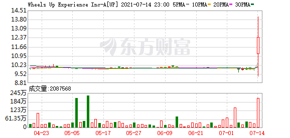 Wheels Up(UP.N)触发熔断,熔断前跳涨36%。