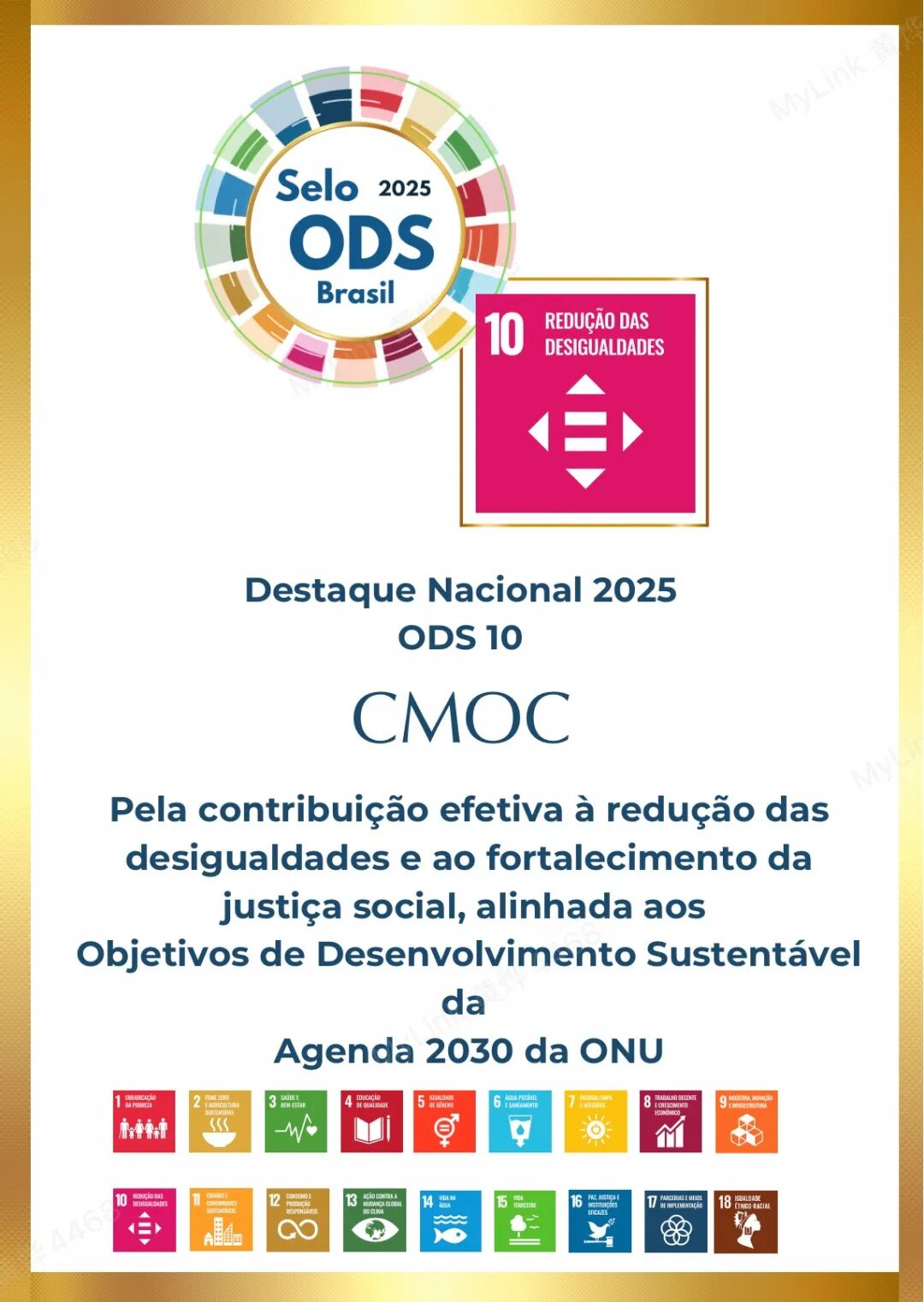 尤其是,洛钼巴西在减少不平等(ODS 10)方面的卓越贡献获得最高级别的“ODS指导奖项”。在Catal o、Ouvidor、Cubat o和S o Paulo等地持续推进的生产性包容、职业技能培训及社区能力建设项目,充分体现了其缩小区域发展差距的坚定承诺和包容性企业文化。