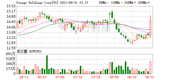 格隆汇8月31日丨云服务提供商Vonage(VG.US)异动拉升,现涨近8%,据报道,公司股东JANA Partners考虑分拆或出售该公司股权。