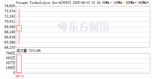 空间技术公司Voyager Technologies Inc.(VOYG)美国IPO首日开盘报69.75美元,此前给出的IPO发行价为每股31美元。