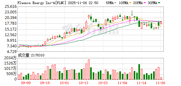 美股储能概念股集体上涨,Fluence Energy涨近8%,CleanSpark涨超4%,GE Vernova、Vistra Energy涨超2%。