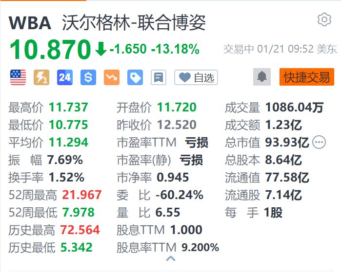 美国连锁药店运营商沃尔格林-联合博姿(WBA.US)跌超13%,报10.87美元。消息面上,美国司法部表示,已连锁药店运营商Walgreens提起诉讼,指控其配发了数百万张缺乏合法医疗目的的处方。司法部在一份声明中表示,如果被判有罪,Walgreens可能因每张非法处方面临最高80850美元的民事罚款。(格隆汇)