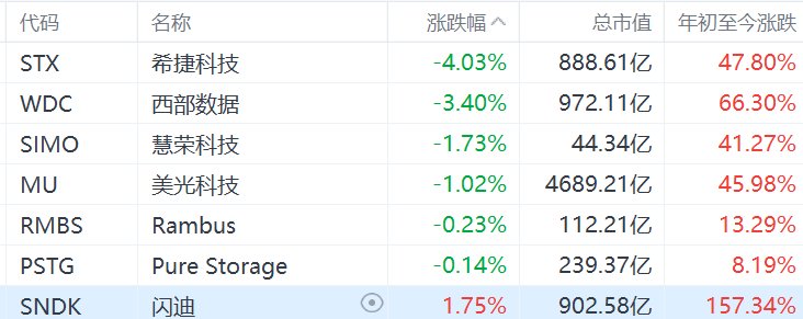 格隆汇2月19日|美股市场存储概念股普跌,其中,希捷科技跌4%,西部数据跌超3%,慧荣科技、美光科技跌超1%,唯闪迪涨近2%。有消息称三星电子正就新一代HBM4芯片展开价格谈判,报价较上代产品高出最多30%,达到约700美元。