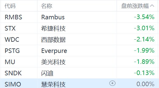 格隆汇3月9日|美股存储芯片概念股盘前普跌,其中,Rambus、希捷科技跌超3%,西部数据跌超2%,Everpure、美光科技跌近2%。