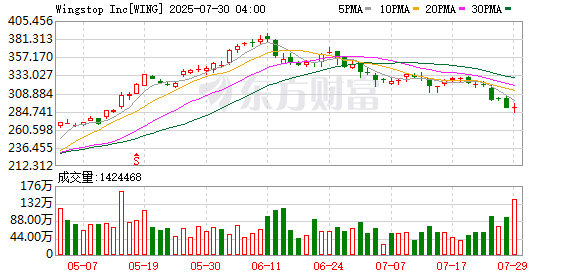 美国餐饮运营商Wingstop盘前股价涨超9%。此前,其二季度调整后每股收益超出市场预期。