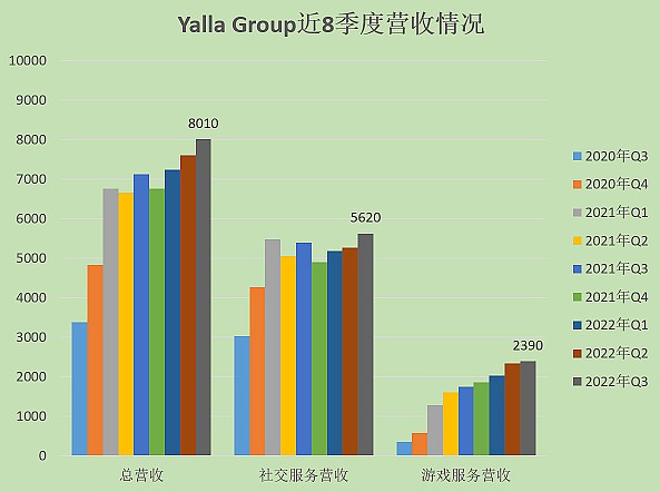 其中社交营收数据为 5620 万美元,同比增长 4.3%,环比增长 6.6%,为 Yalla Group 自公布营收数据以来成绩最好的一次。