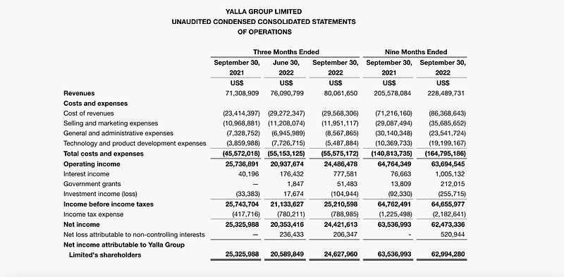 下面我们将借助财报数据,仔细看下 Yalla Group 2022 年 Q3 发展情况以及未来发展趋势。