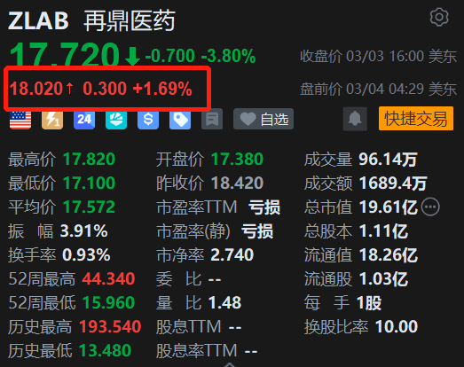 再鼎医药港股今日收涨4%,带动再鼎医药(ZLAB.US)美股盘前涨约2%。消息上,再鼎医药绩后持续获机构唱好。瑞银研究报告指,再鼎医药2025年第四季业绩大致符预期,收入按年增长17%至1.271亿美元,稍胜该行及市场预期;西南证券称再鼎医药收入持续攀升,核心管线临床进展顺利;美银证券升再鼎医药港股目标价至16.9港元,去年收入增长符预期。(格隆汇)