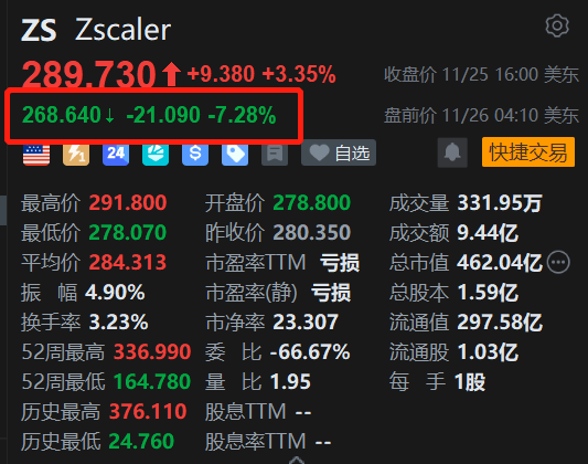 格隆汇11月26日|网络安全提供商Zscaler(ZS.US)盘前跌超7%。消息上,ZS公布了26财年第一季度的超预期业绩,非GAAP每股收益为0.96美元(比市场预期高0.10美元),营收7.881亿美元(同比增长26%,超出预期1,430万美元)。营收环比增速从上一季度的21%加速,年度经常性收入(ARR)达到32.04亿美元(同比增长26%),显示出在零信任安全市场和扩展AI安全产品方面的强劲执行力。然而,新增ARR为1.89亿美元,较上一季度的1.98亿美元有所下降,尽管基本面稳健,可能仍会对盘后股价造成压力。Zscaler预计全年收入为32亿8,200万美元至33亿100万美元。
