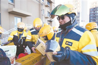 本报讯 (记者 刘欣欣) 近日,朝阳区金盏地区总工会先后来到辖区维伯科技有限公司和中通快递北京朝阳金泽网点,为240名坚守岗位的快递员、外卖配送员送上冬日关怀,让他们在寒冬中感受到“娘家人”的浓浓温情。