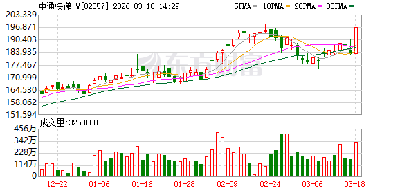 北京商报讯3月18日,北京商报记者获悉,中通快递公布了其2025年第四季度及2025年全年未经审计的财务业绩。财报显示,2025年,中通实现了包裹量增量45亿件,全年包裹量达385.2亿件,同比增长13.3%;调整后净利润达95亿元。经营活动产生的现金流量净额为119.68亿元。其中,2025年第四季度包裹量为105.58亿件,较2024年同期的96.65亿件增长9.2%;调整后净利润为26.95亿元。